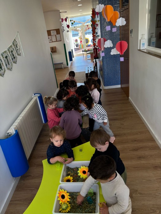 A les safates d'experimentació els nostres petits gaudeixen al màxim amb els elements primaverals
