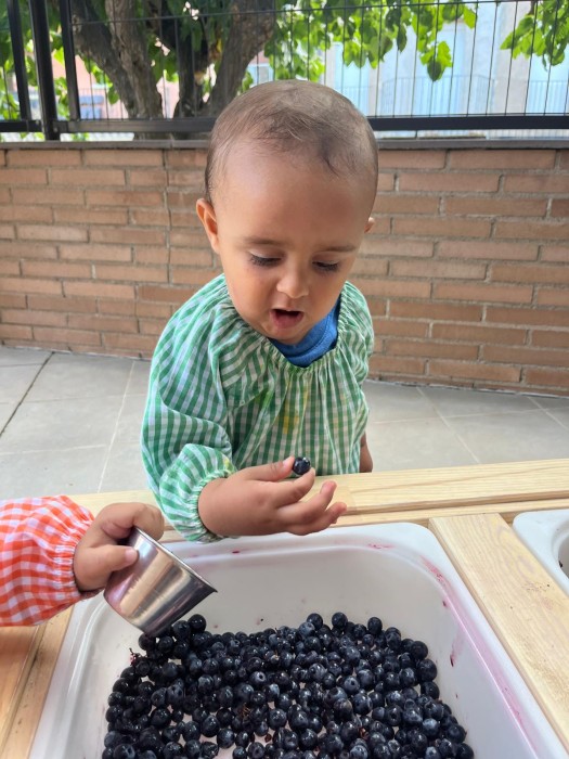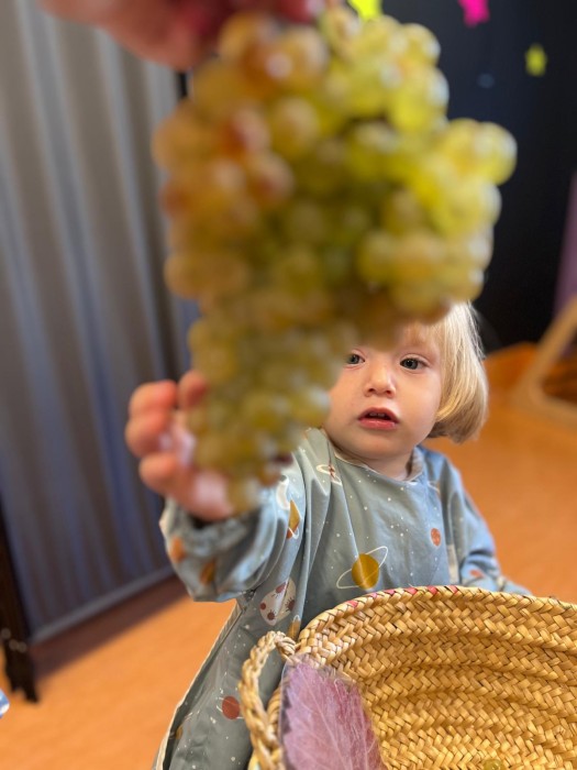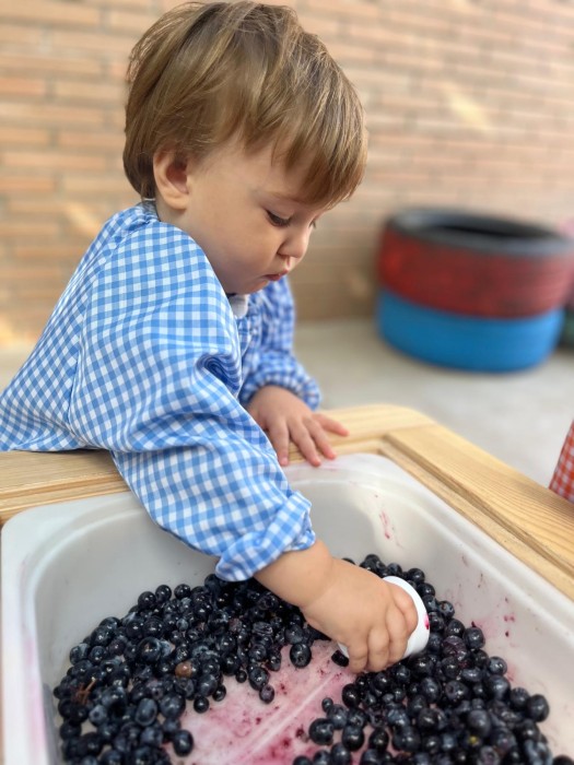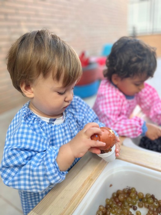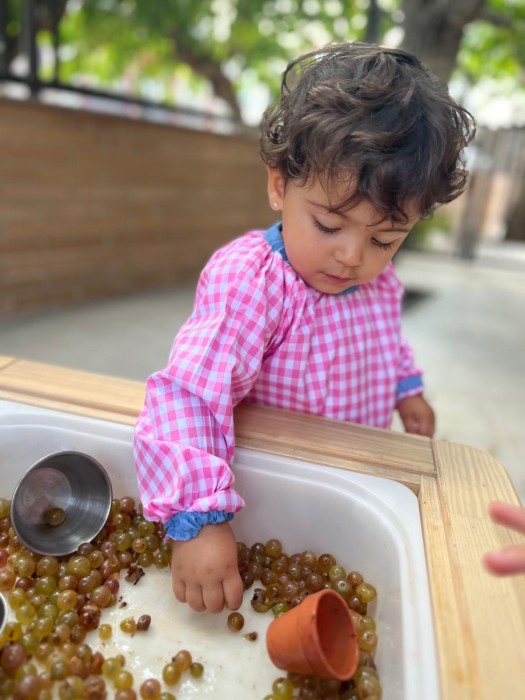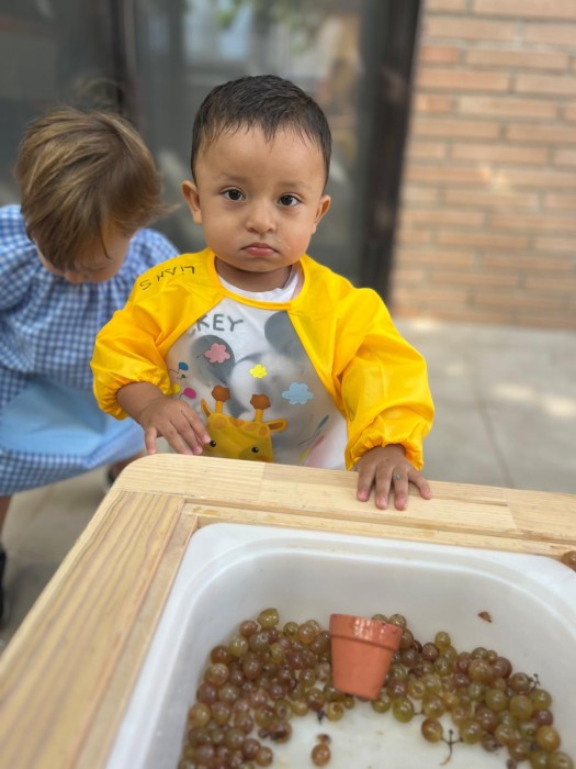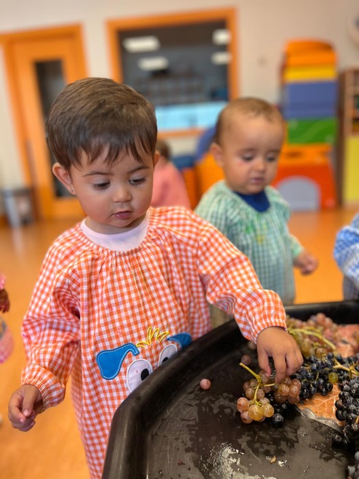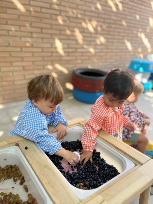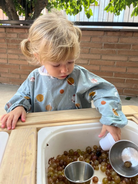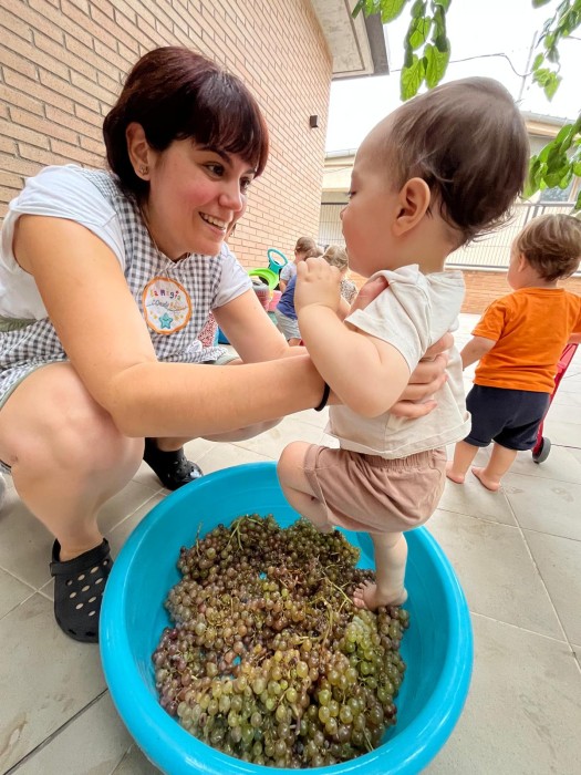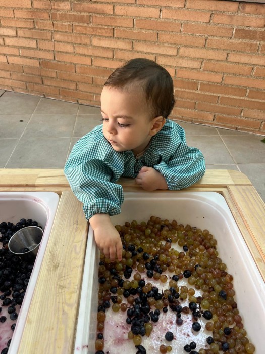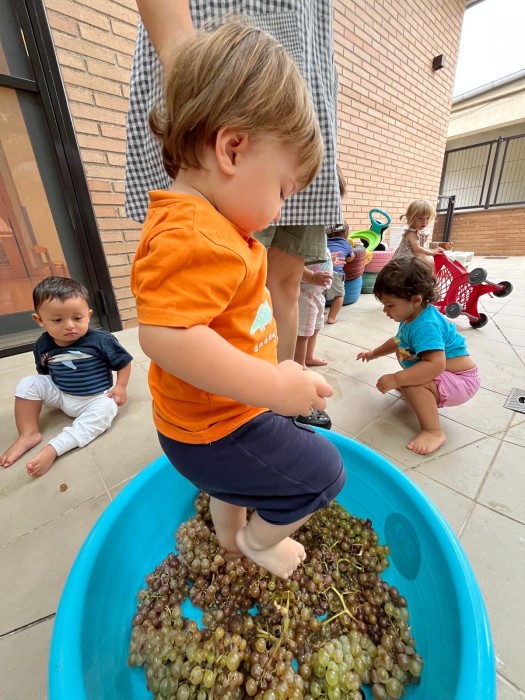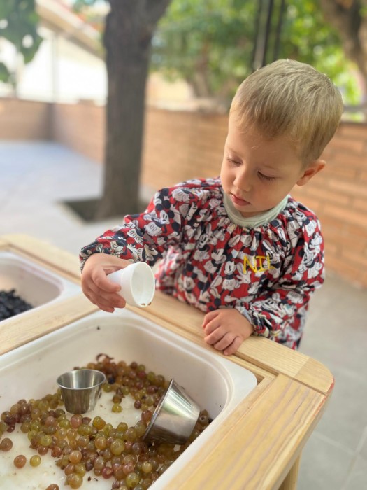 Seguidament durant els dies, han manipulat i experimentat amb raïm de color blanc i negre, que han pogut tastar, olorar, xafar, desgranar, transvasar... Descobrir la seva textura amb els peus ha sigut una aventura!