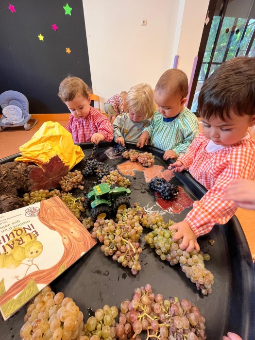 Hem explicat el conte del Raïm inquiet, explica la història d'un gotim de raïm impacient i eixerit que té moltes ganes de ser vi. Una forma de conèixer el vi i tot el procés que es fa per aconseguir arribar al seu objectiu. Reconeixent imatges que els resulten familiars i que es van emocionant a mesura que avança la història.
