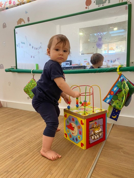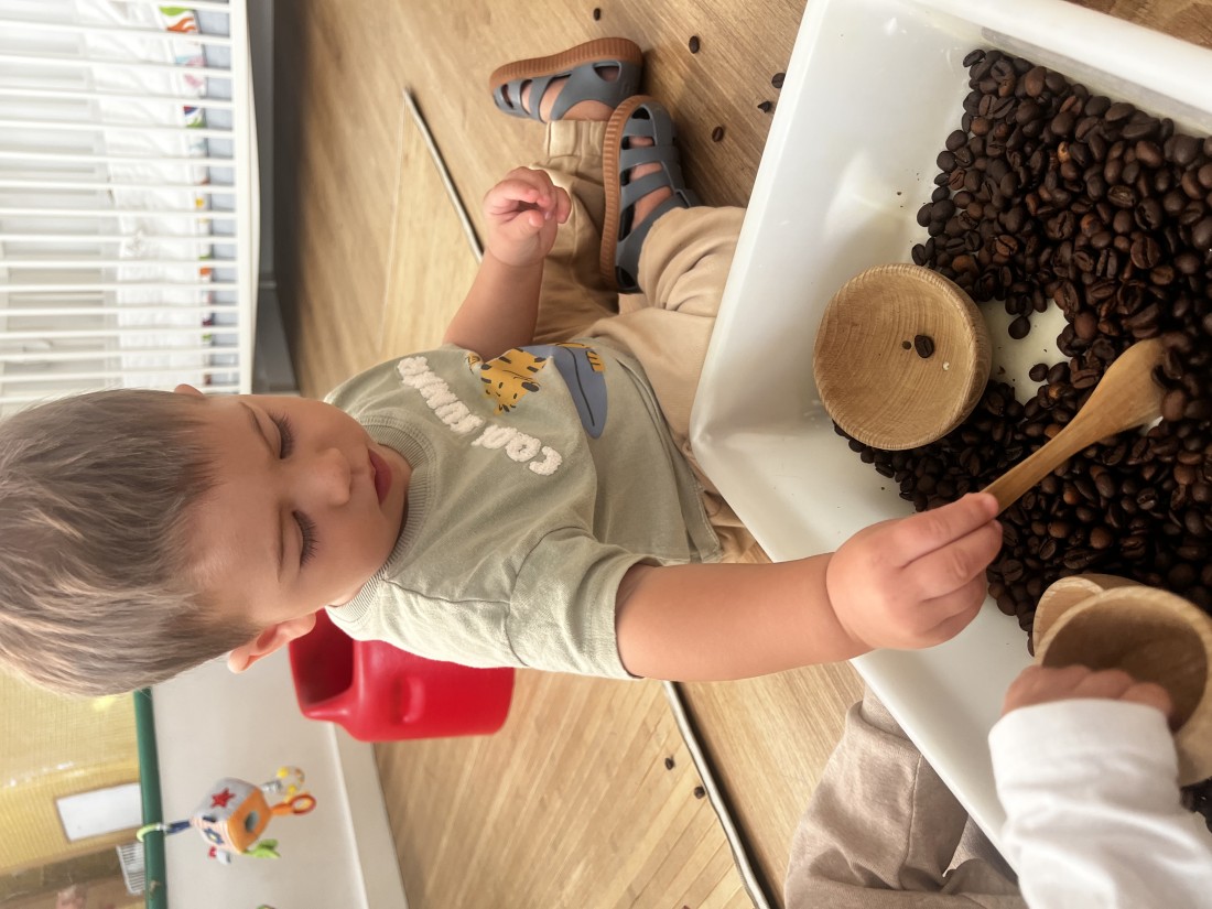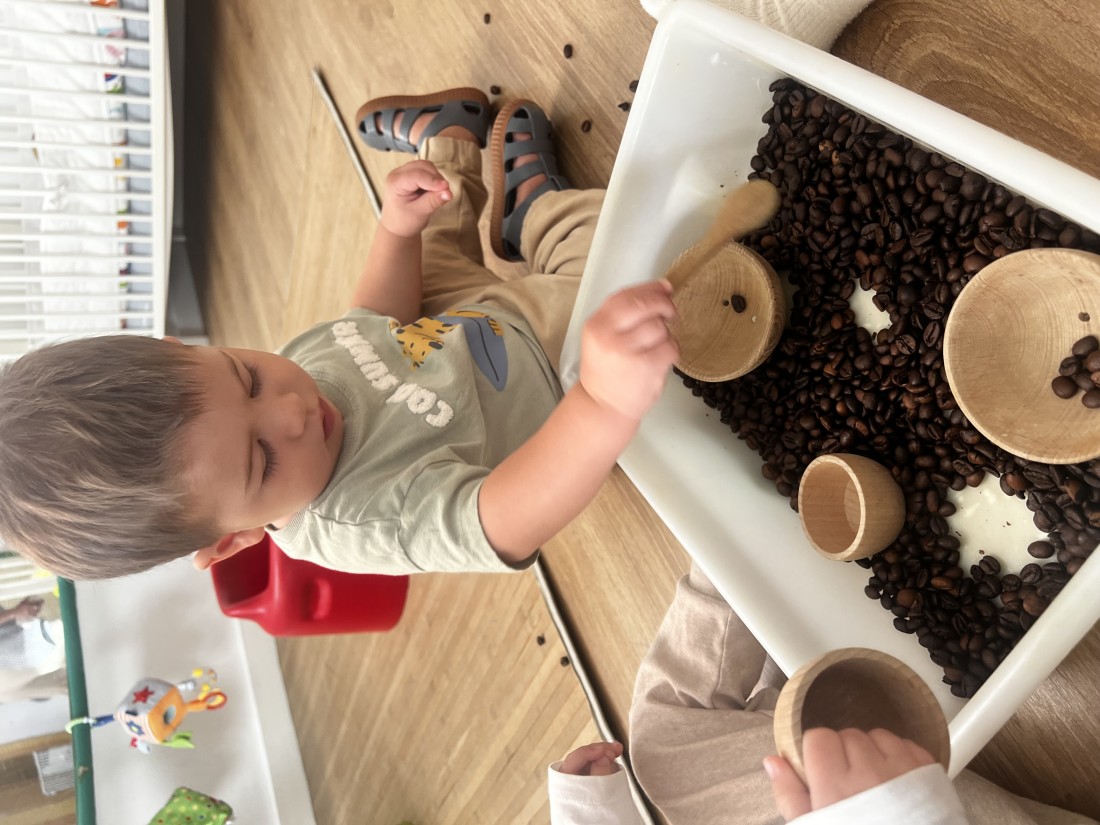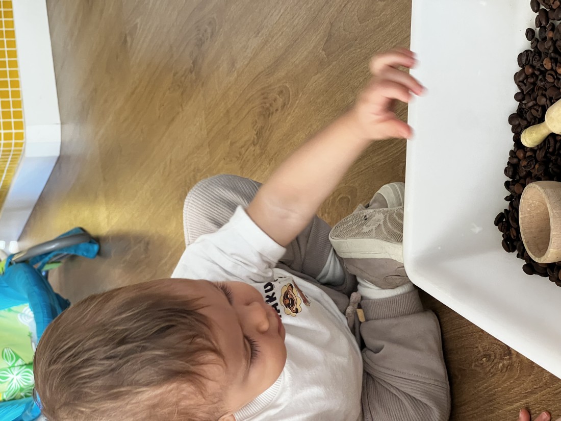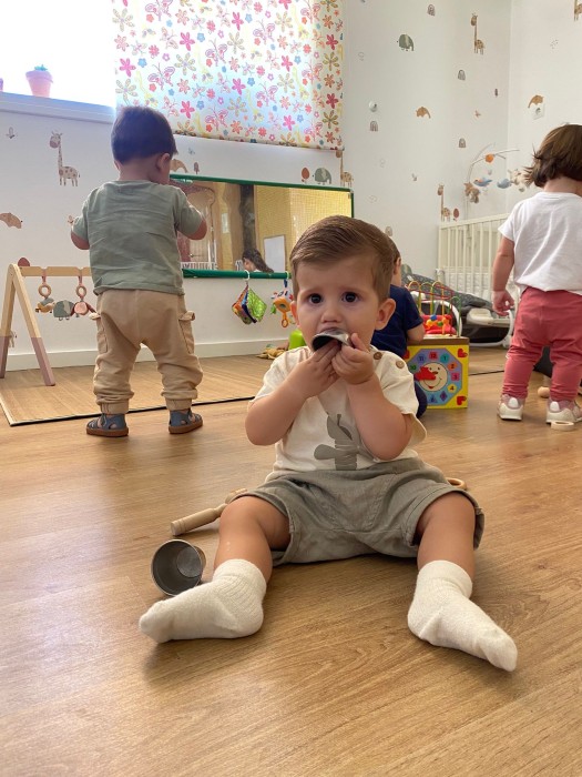 Els petits mosquits s'han trobat un espai de joc amb materials de fusta per tal de poder-los explorar, transvassar i descobrir-ne les seves possibilitats