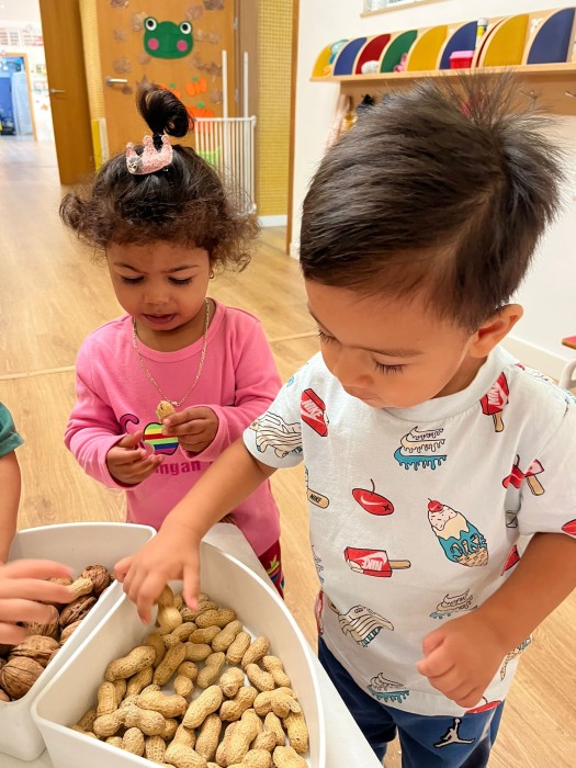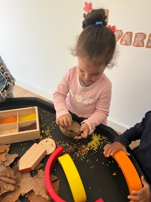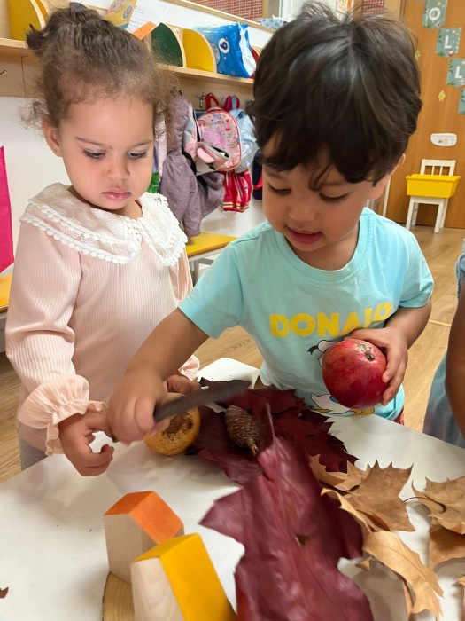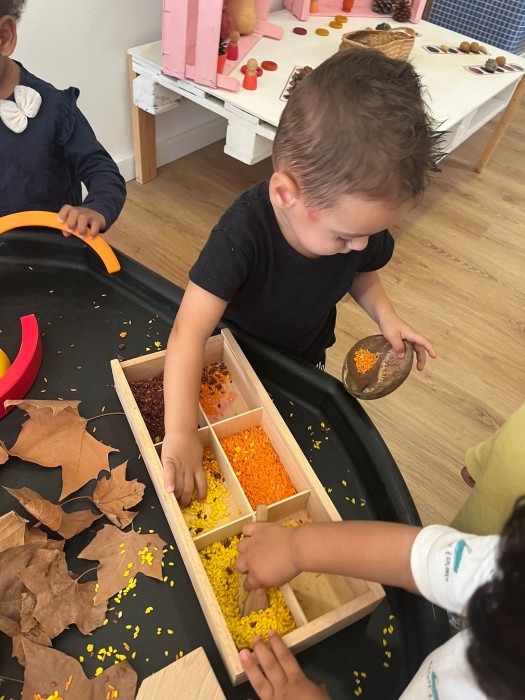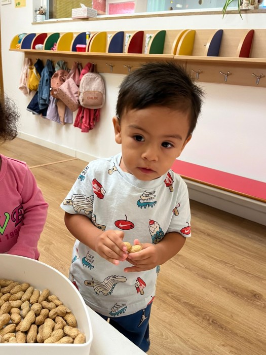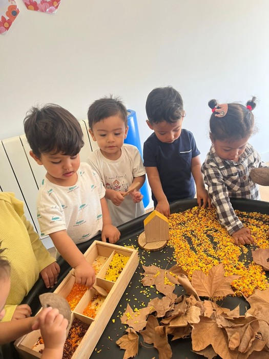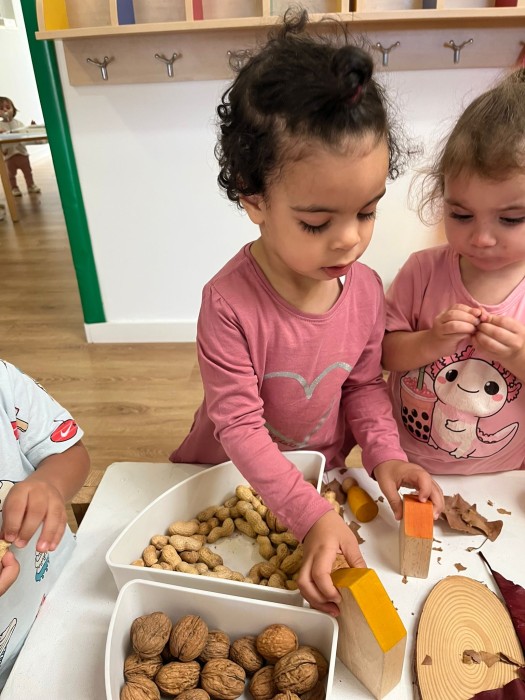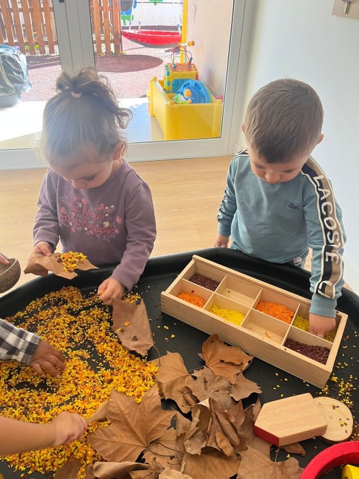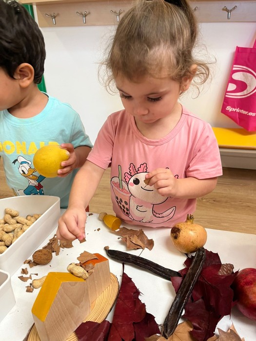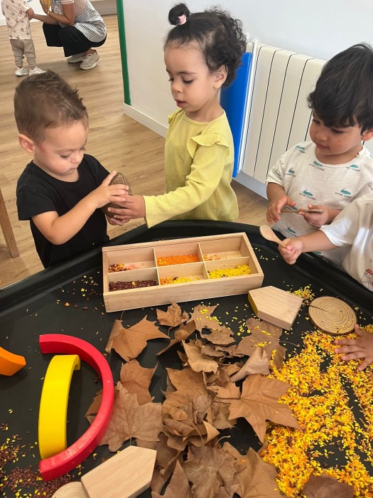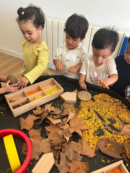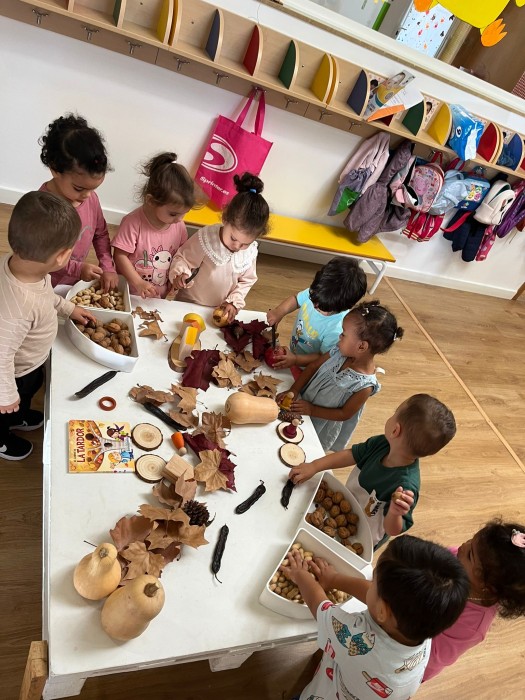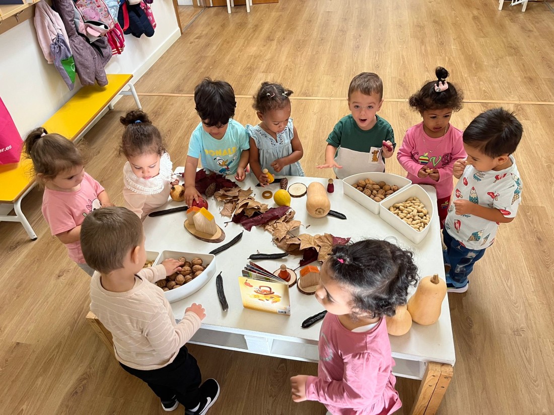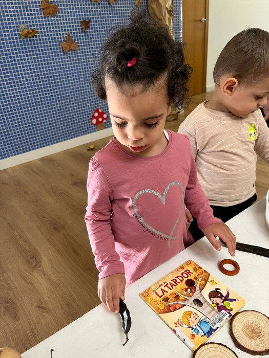 Els nostres bonics pollets han estat descobrint una taula de joc amb elements de la tardor que acompanyava el conte que prèviament han estat escoltant i observant per després crear la seva propia història a través del joc