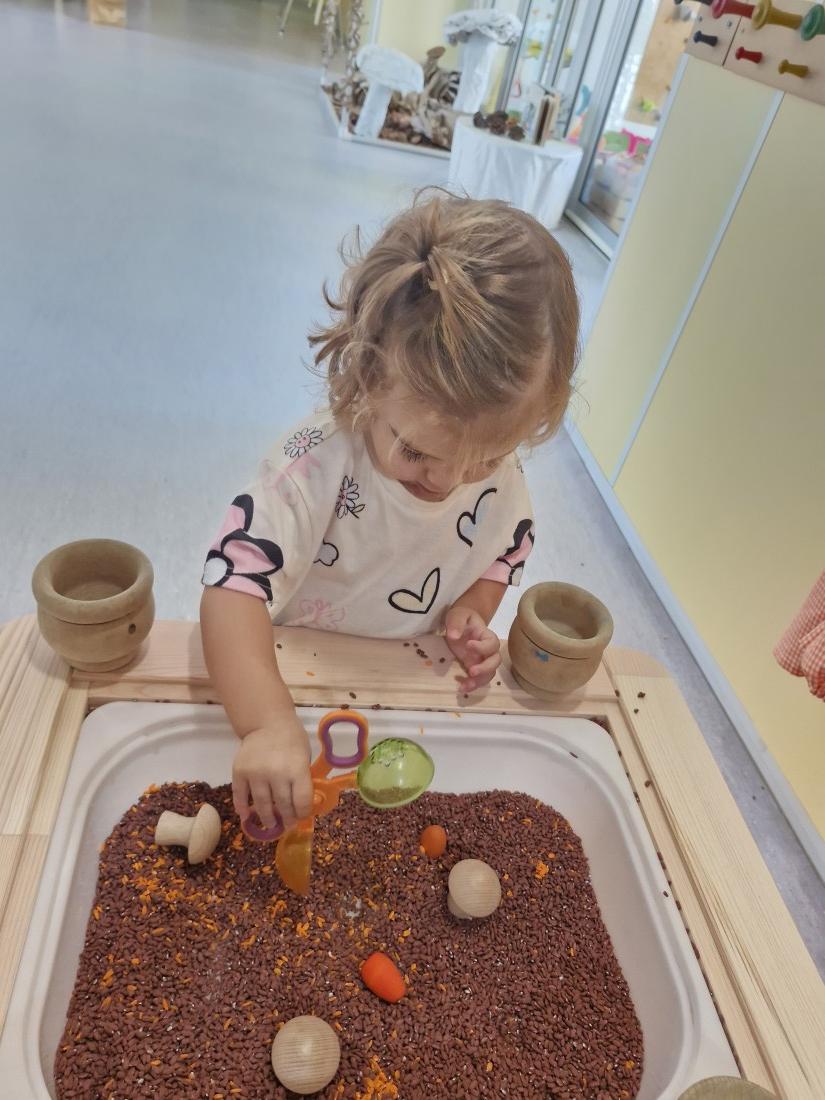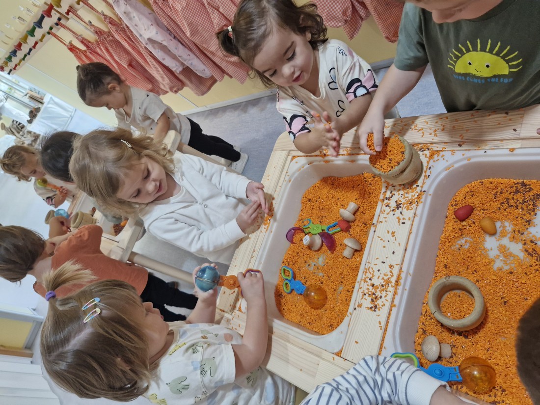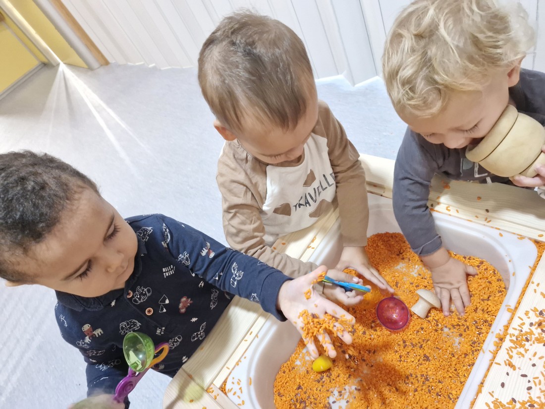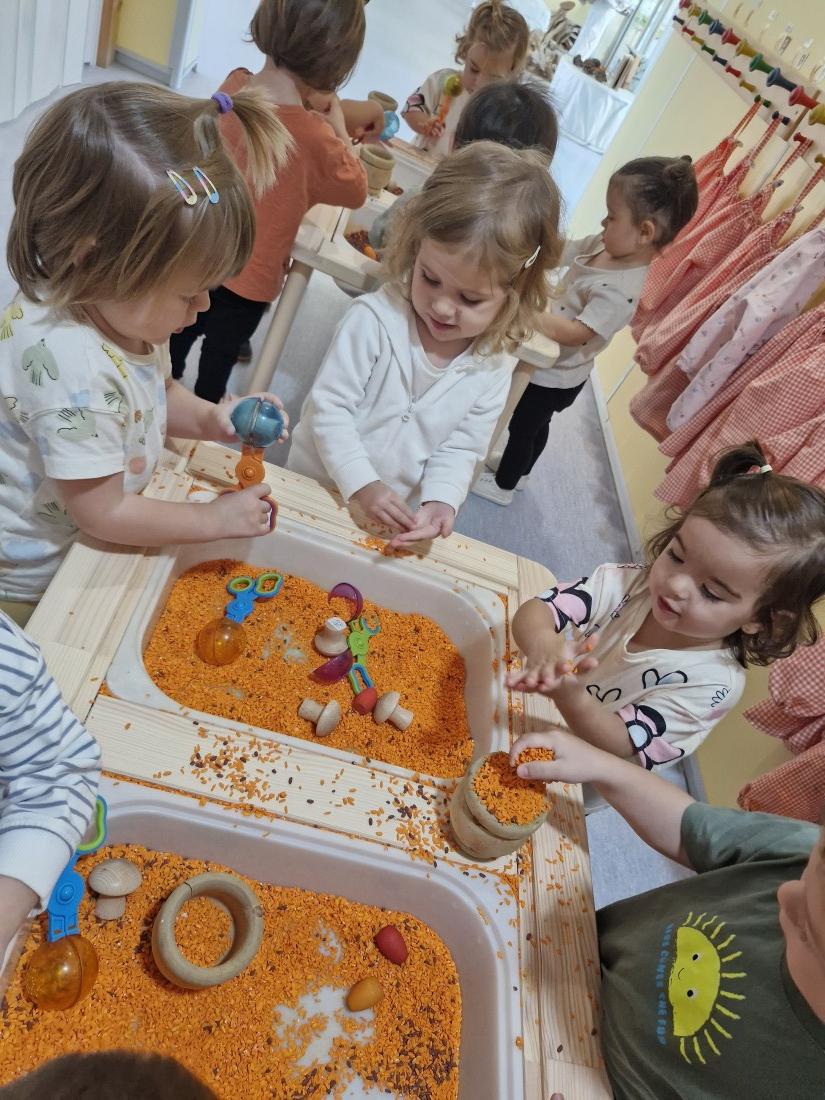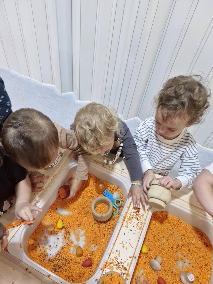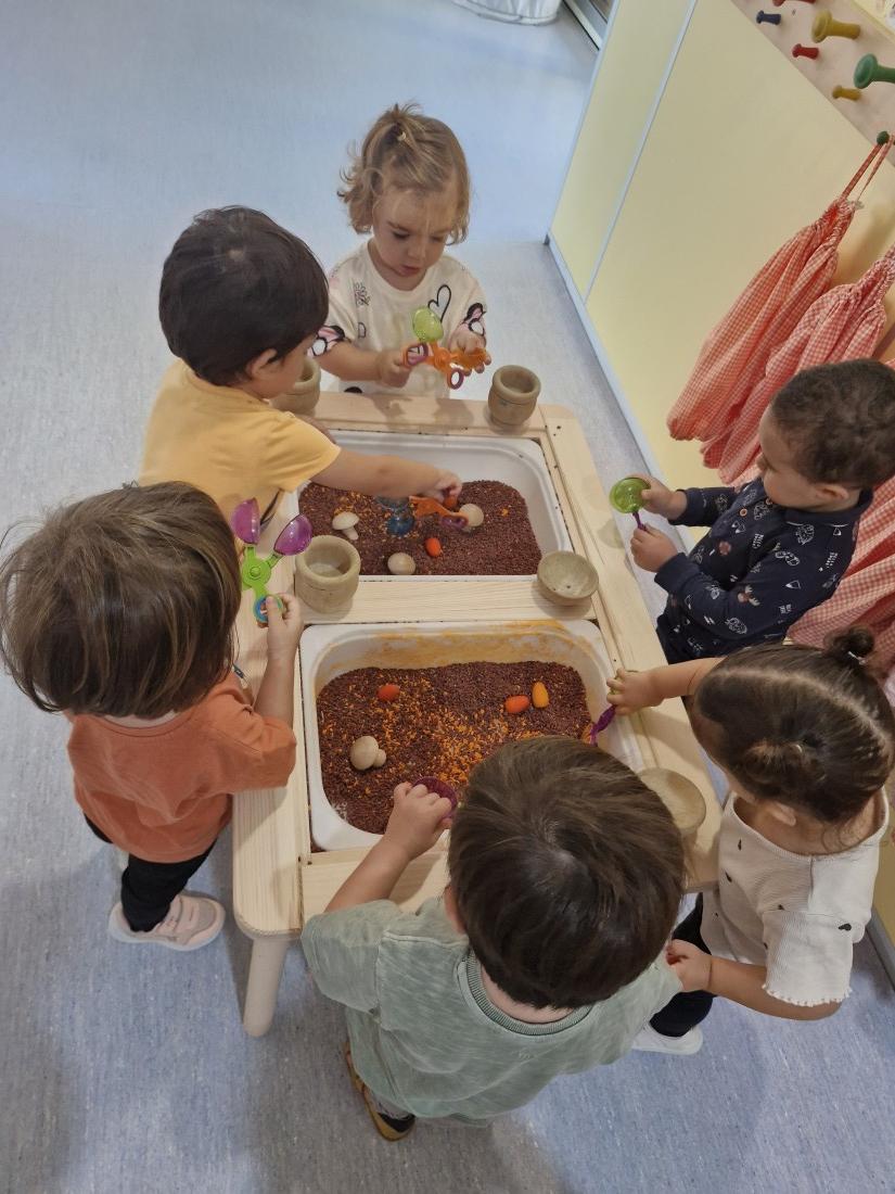 Hem manipulat arros pintat en color de la tardor a les safates.