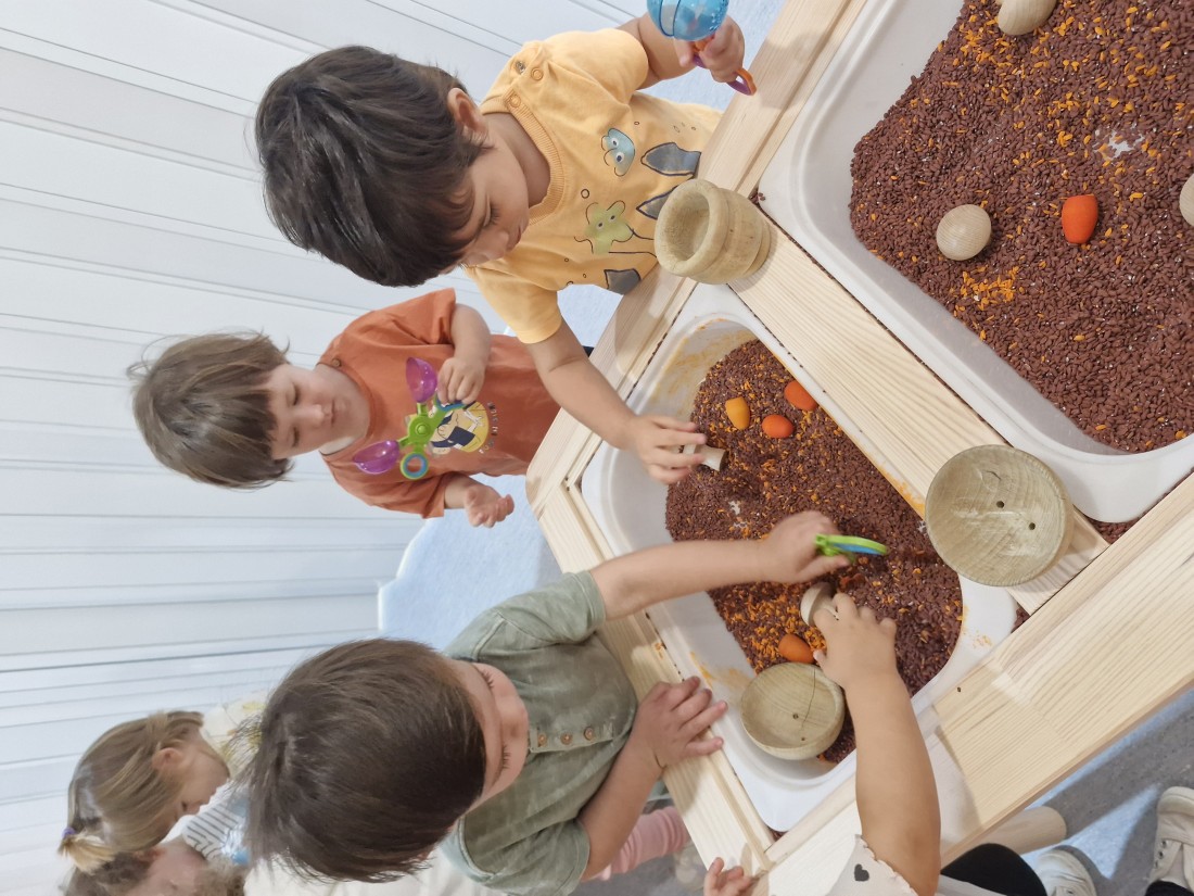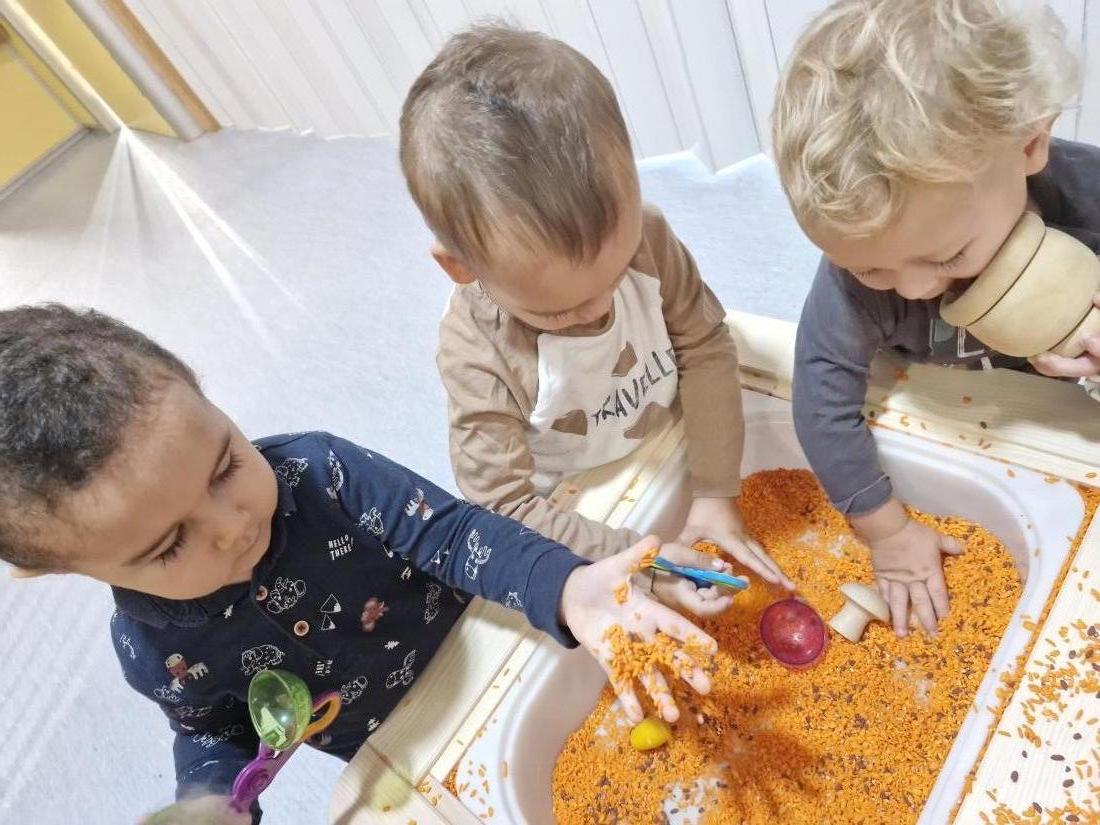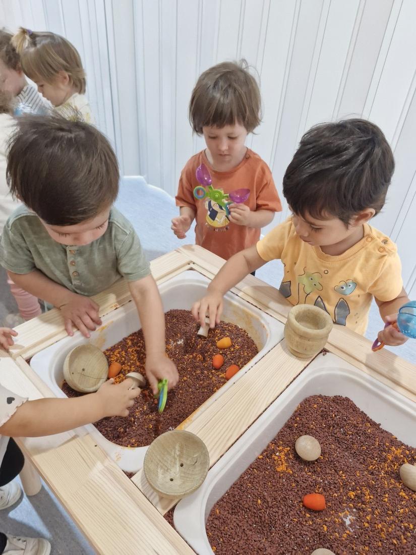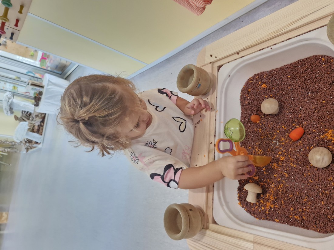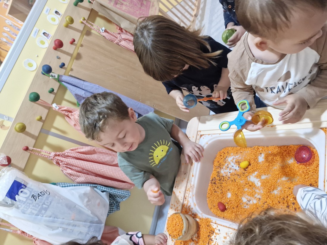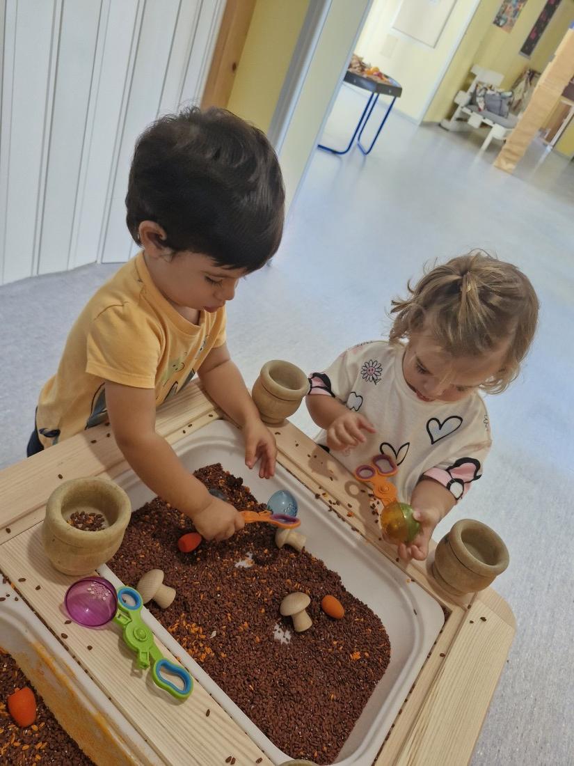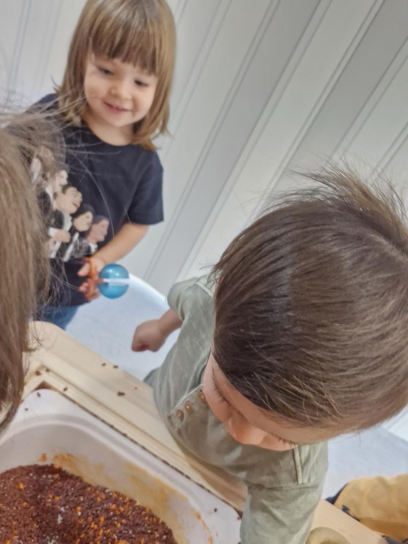 Hem manipulat arros pintat en color de la tardor a les safates.
