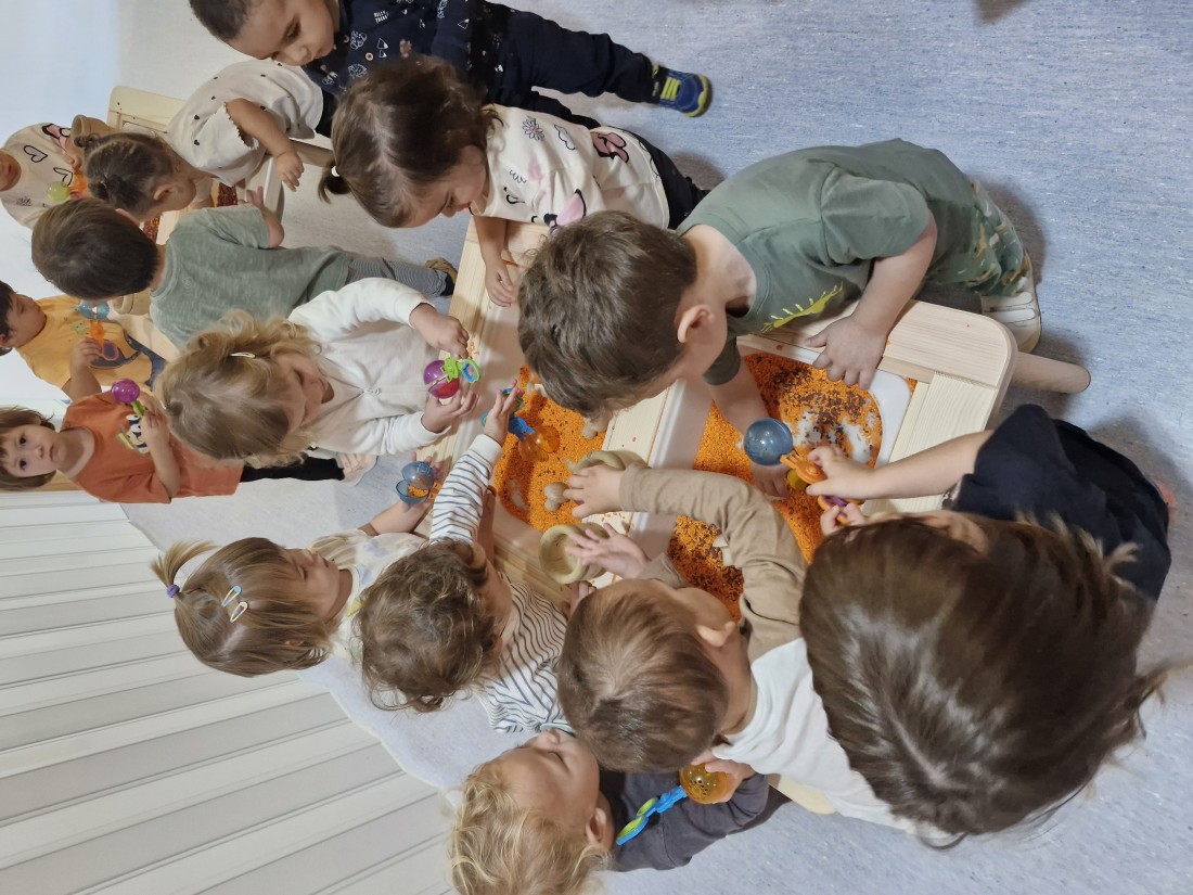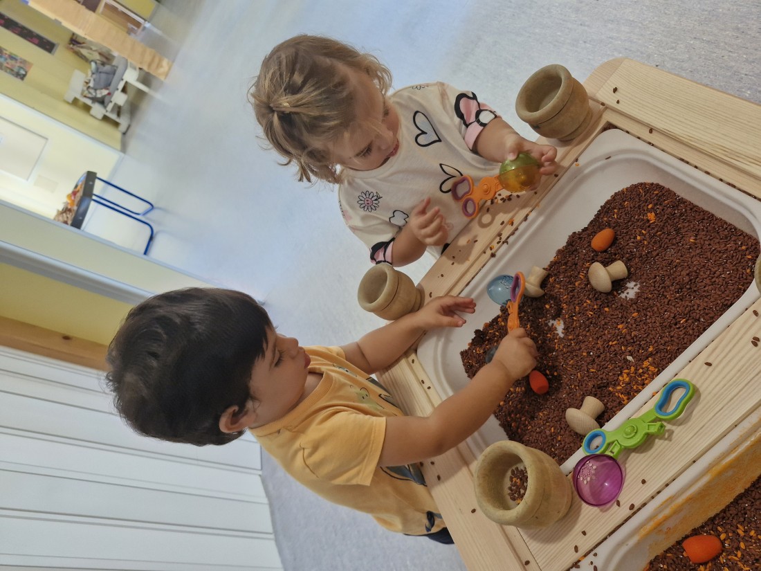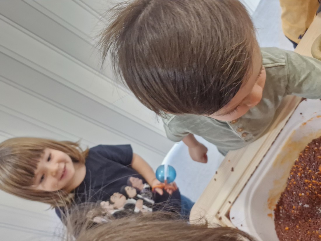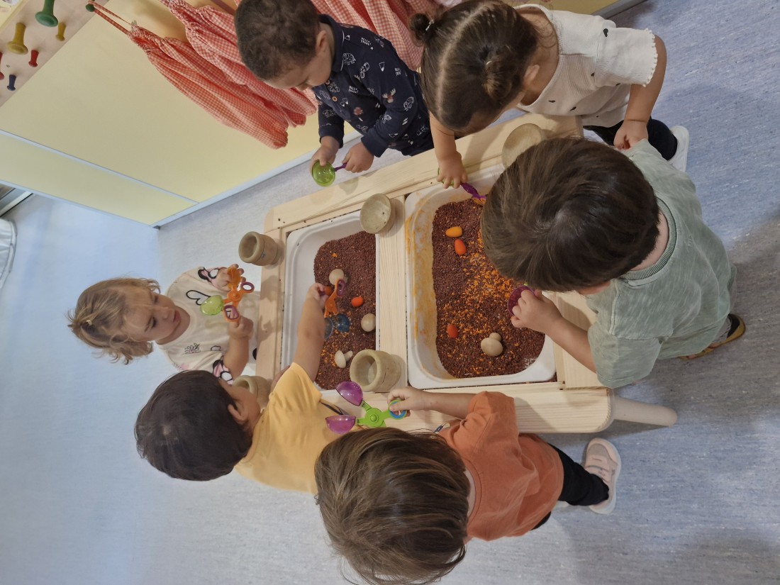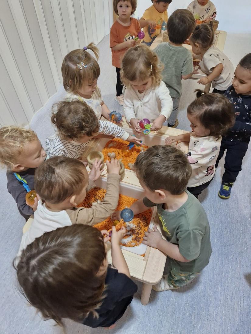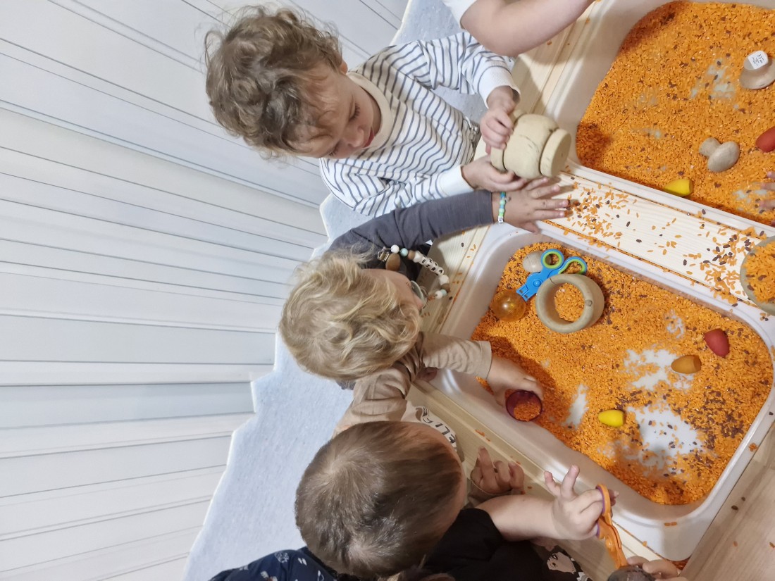 Hem manipulat arros pintat en color de la tardor a les safates.