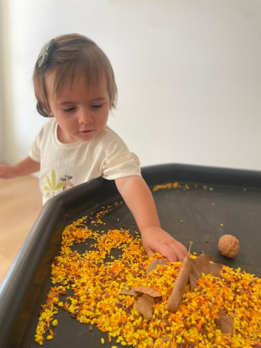 Les petites granotetes segueixen gaudint d'aquest joc d'exploració d'elements de la Tardor