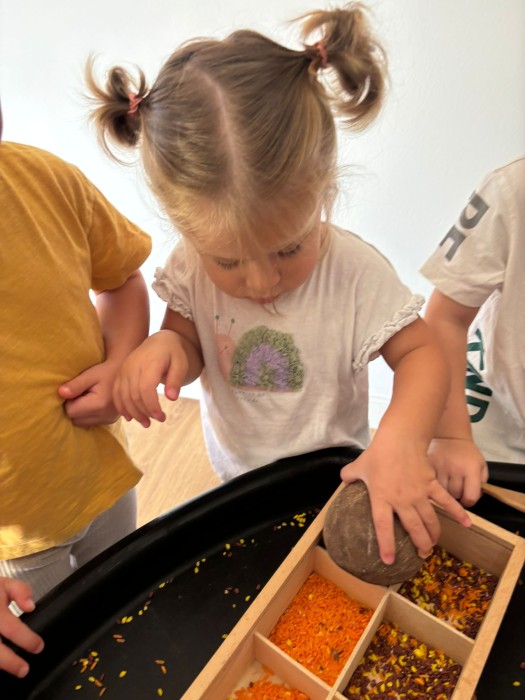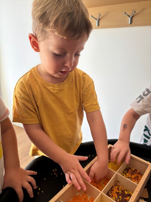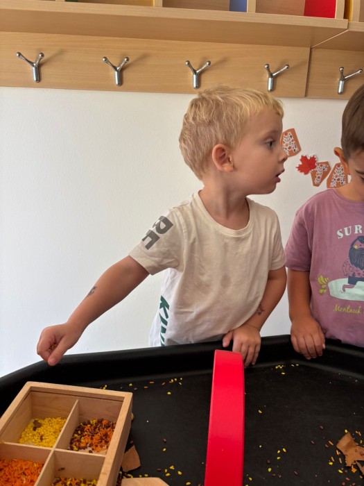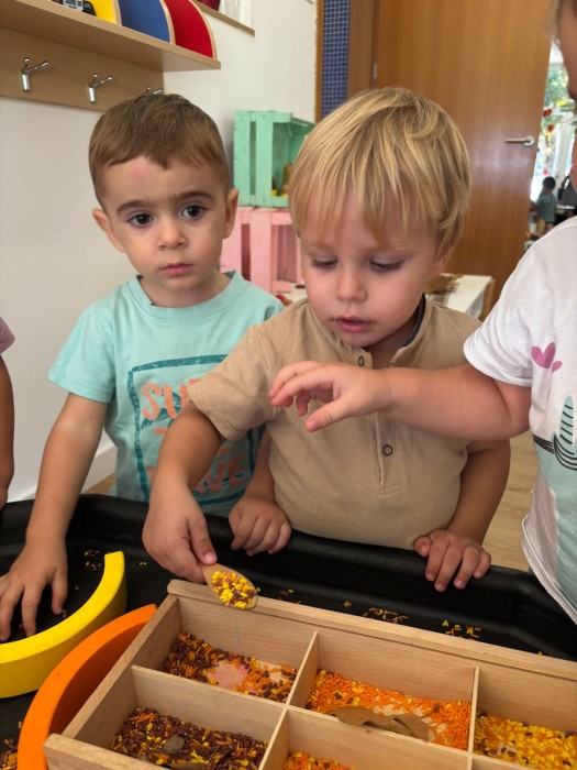 Seguim jugant i experimentant a la tufftray també pensant com relacionar imatges reals amb el joc de lògica matemàtica